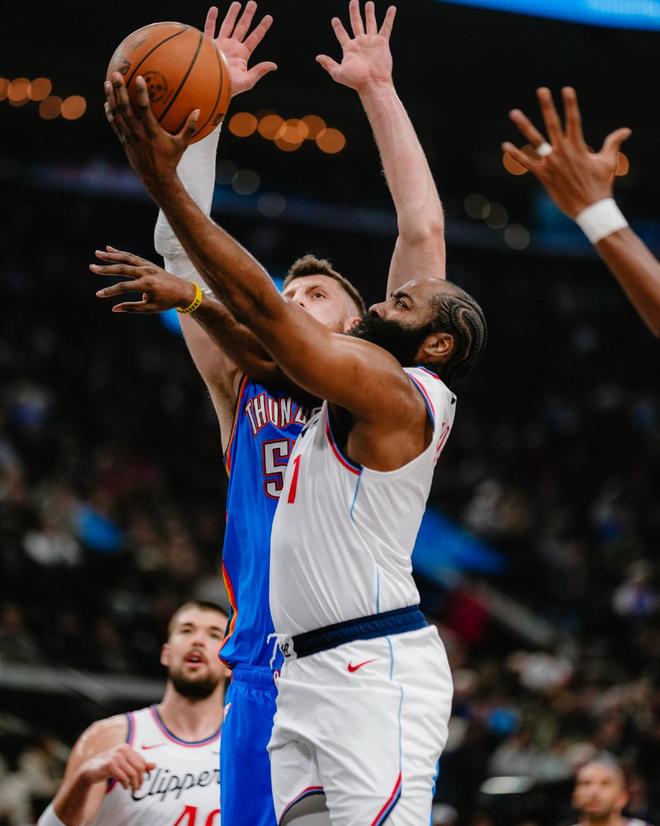 哈登25+6+6+5记3分创NBA历史第2神迹,快船完败雷霆!亚历山大30+12创纪录!